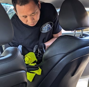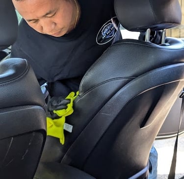 Leather seats and surfaces require special care to maintain their softness and durability. We use gentle leather cleaners to remove dirt, oils, and stains without damaging the material. After cleaning, we apply a premium leather conditioner to keep the leather supple, prevent cracks, and protect it from UV damage and wear over time.
